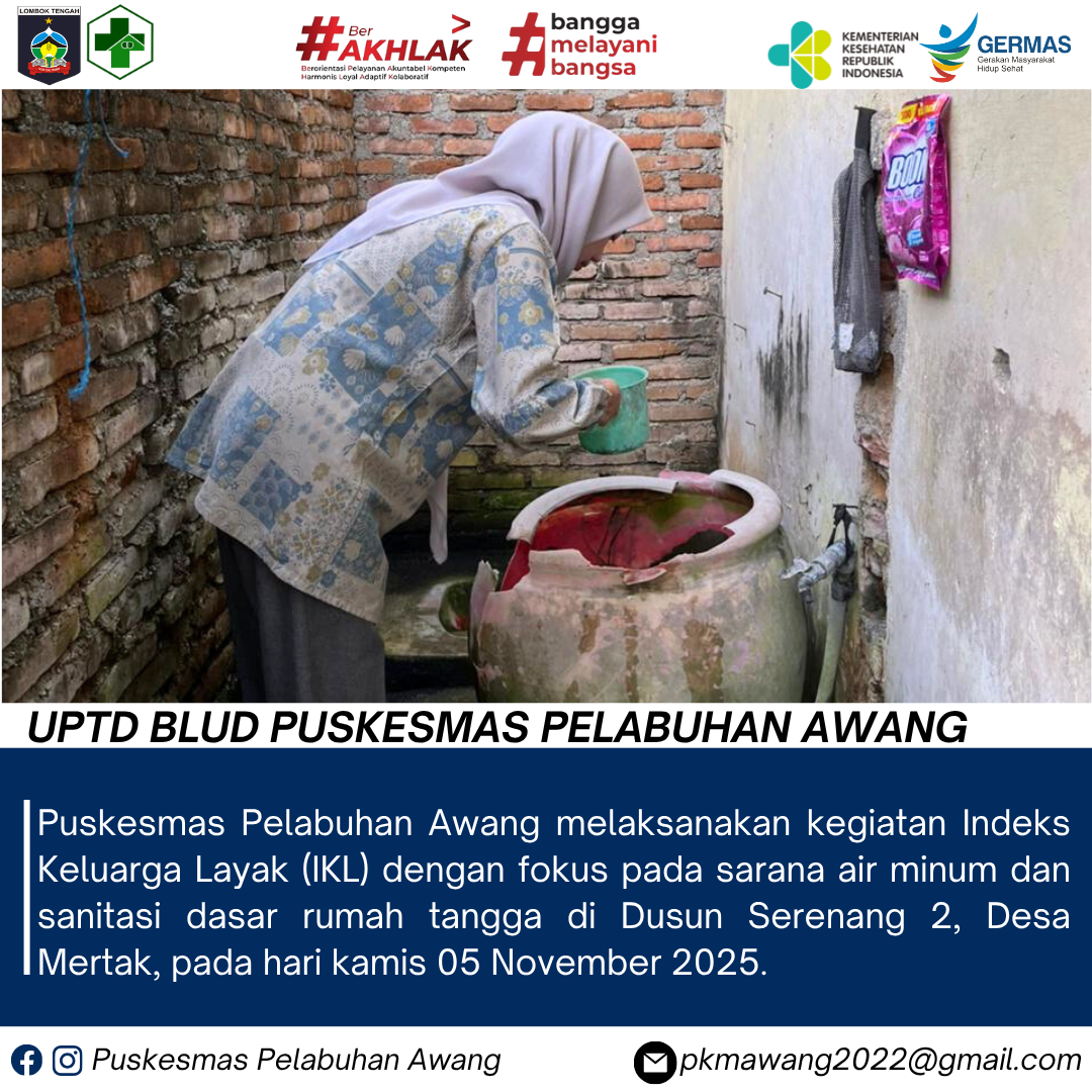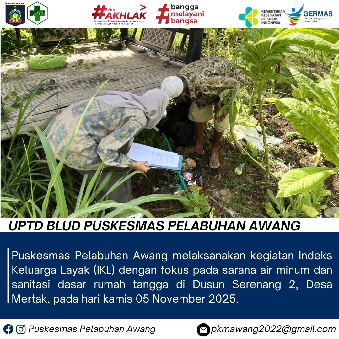 Puskesmas Pelabuhan Awang melaksanakan kegiatan Indeks Keluarga Layak (IKL) dengan fokus pada sarana air minum dan sanitasi dasar rumah tangga di Dusun Serenang 2, Desa Mertak, pada hari kamis 05 November 2025.